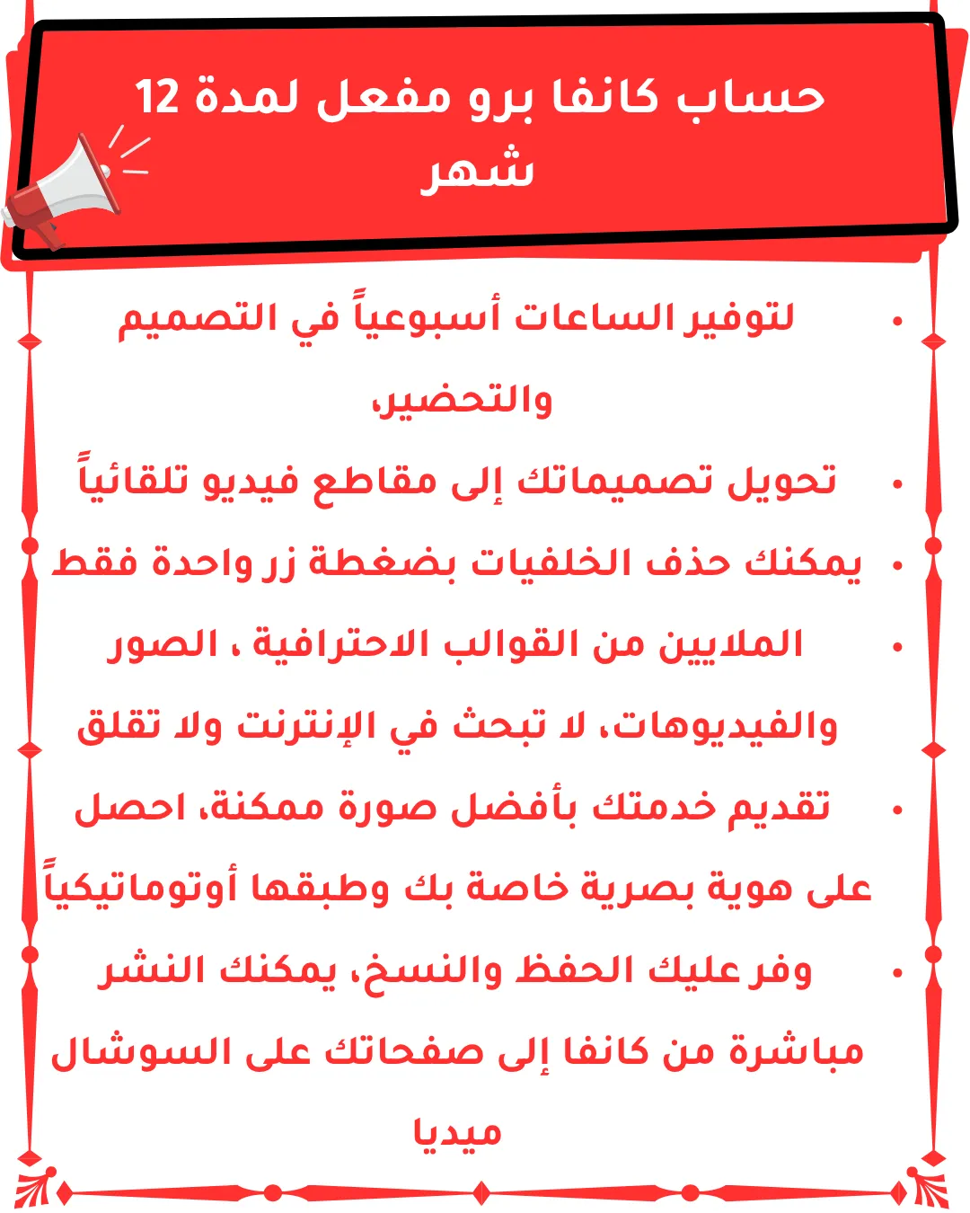 حساب كانفا برو لمدة عام كامل (القيمة الفعلية 55$)