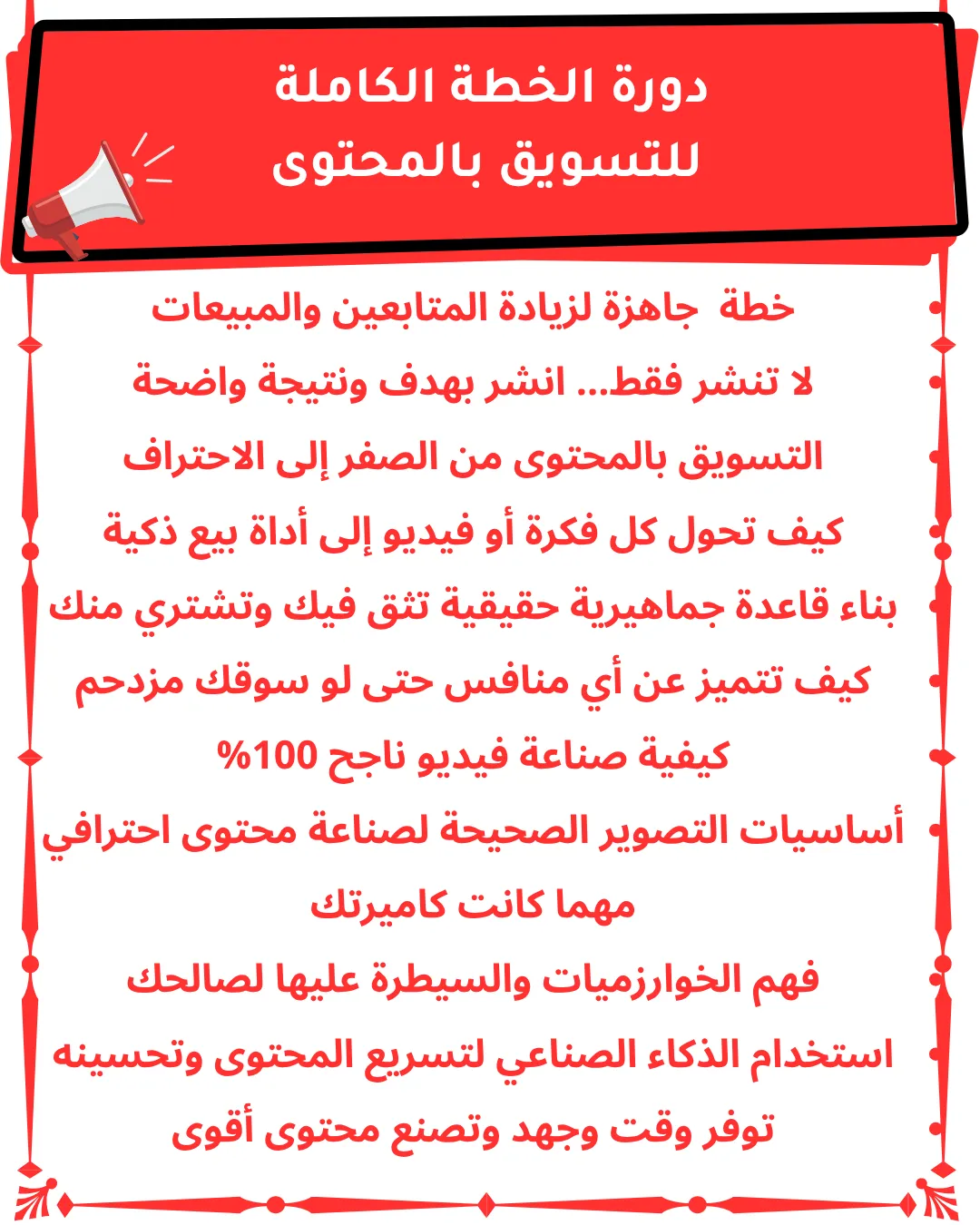 ✅ ستتعلم كيف تجعل كل فكرة أو فيديو يتحول إلى أداة بيع ذكية تخدم عملك.