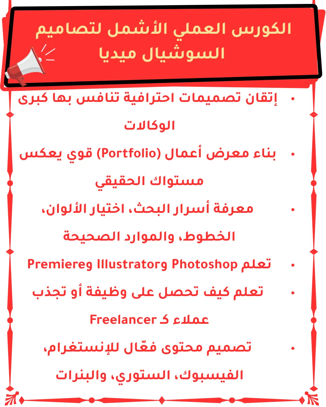 كورس الكامل لإحتراف تصميمات السوشيال ميديا (القيمة الفعلية 100$)